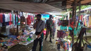 BARABAI – Babinsa Koramil 03/Haruyan Koptu Hartawan dan Babinkamtibmas, serta petugas Kesehatan Kecamatan Haruyan melakukan penertiban masker, di Pasar Mu’ui Kecamatan Haruyan.Minggu.(12/7)