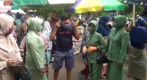 BARABAI-Plh.Danramil 1002-03/Haruyan Peltu Henri Murpianto, Camat Haruyan berserta Staf Kepala Puskesmas Haruyan beserta staf Anggota Polsek Haruyan, Ibu-Ibu PKK kecamatan Haruyan dan anggota Persit Kartika Candra Kirana Ranting 4 Haruyan melaksanakan Himbauan dan Sosialisasi Gerakan Bersama Pakai Masker (Gerbak) di Pasar Haruyan.Senin (24/8).