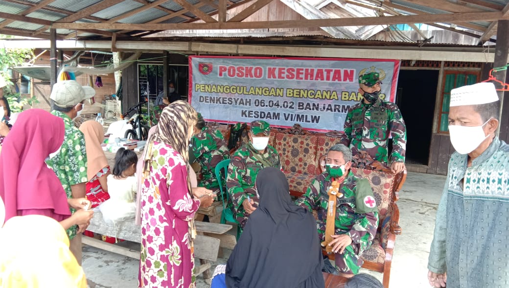 Melalui Tim Pusat Kesehatan Angkatan Darat, TNI-AD membuka posko kesehatan penanggulangan banjir di kecamatan Pandawan Kabupaten Hulu Sungai Tengah (HST).Rabu (20/01).