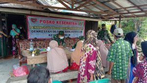 Posko kesehatan melayani warga masyarakat yang terdampak banjir di desa Kayu Rabah dan Desa Balimau yang didukung oleh Denkesyah 06.04.02 Banjarmasin.