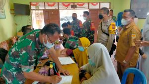 Pelayanan vaksinasi berlangsung di kantor desa Benawa Tengah jalan Perintis Kemerdekaan untuk mempermudah warga masyarakat yang akan bervaksin,”terang Kapten Inf Rudi Hartono