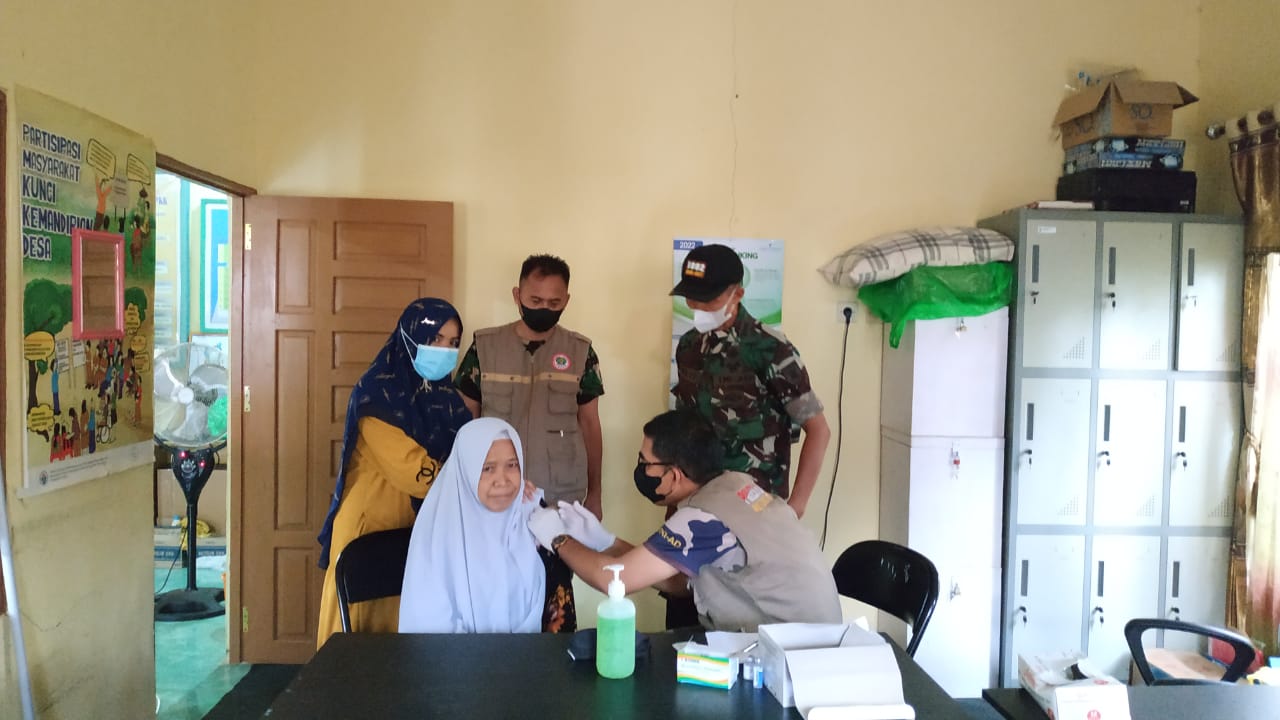Pelaksanaan serbuan vaksin Tim Mobile Kodim 1002/HST dengan koordinator Serma Samsuni Lesmana Kapala Polkes 06.09.15/Barabai dan didampingi langsung oleh Danramil 1002-04/Labuan Amas Selatan Kapten Inf Moh.Alip Suroso