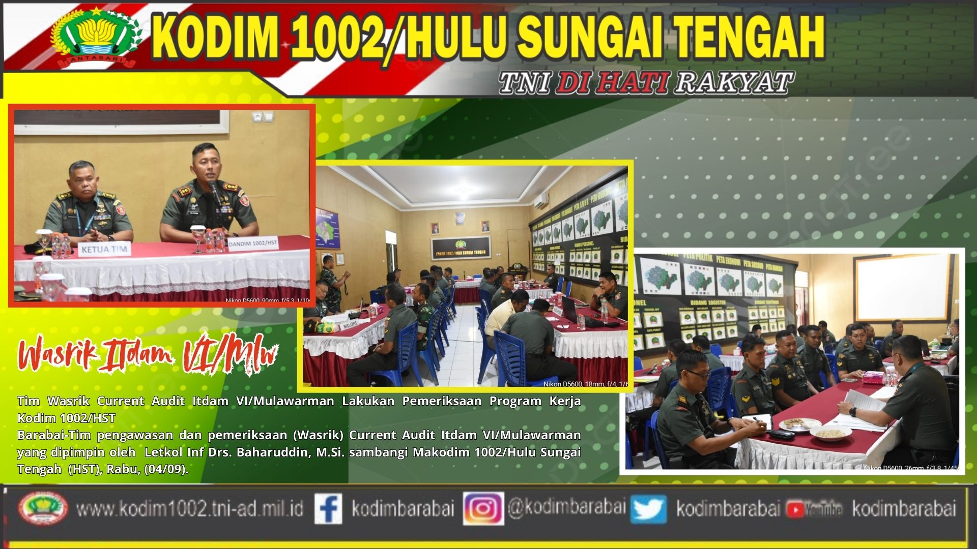 Barabai-Tim pengawasan dan pemeriksaan (Wasrik) Current Audit Itdam VI/Mulawarman yang dipimpin oleh Letkol Inf Drs. Baharuddin, M.Si. sambangi Makodim 1002/Hulu Sungai Tengah (HST), Rabu, (04/09).