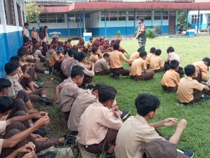 BARABAI-Dalam rangka meningkatkan kedisiplinan di lingkungan sekolah, Siswa SMPN Pantai Hambawang mendapat pembekalan PBB oleh Babinsa.