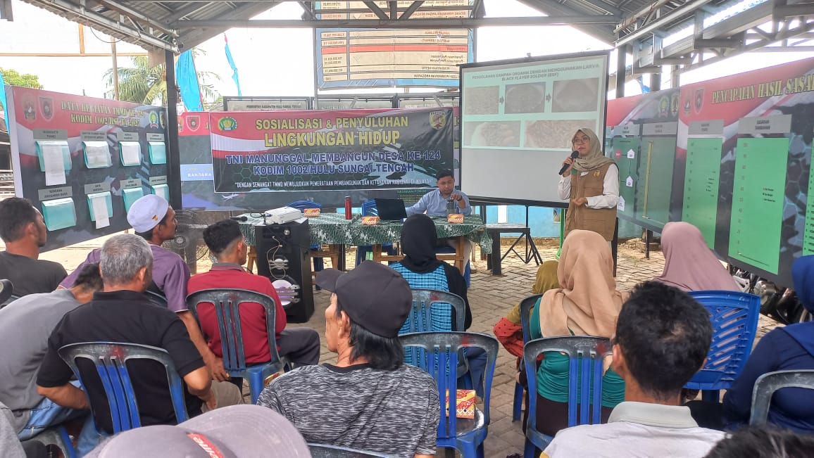 Kali ini, Satgas TMMD ke-124 bekerja sama dengan Dinas Lingkungan Hidup Kabupaten Hulu Sungai Tengah menggelar penyuluhan tentang lingkungan hidup di wilayah Haruyan. Kamis (15/5/2025).