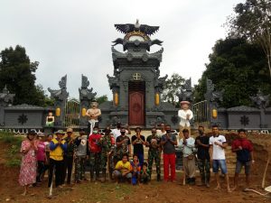 Dikomandoi oleh Babinsa Koramil 1002-01/Birayang Kodim 1002/Barabai Kopda Erli Sepriyanto, sebanyak 8 orang anggota TNI dari Kodim 1002/Barabai 4 orang dan anggota Yonif 621/Manuntung 4 orang berbaur dengan warga melakukan gotong royong pembersihan lahan dan pengurukan bangunan Pura.