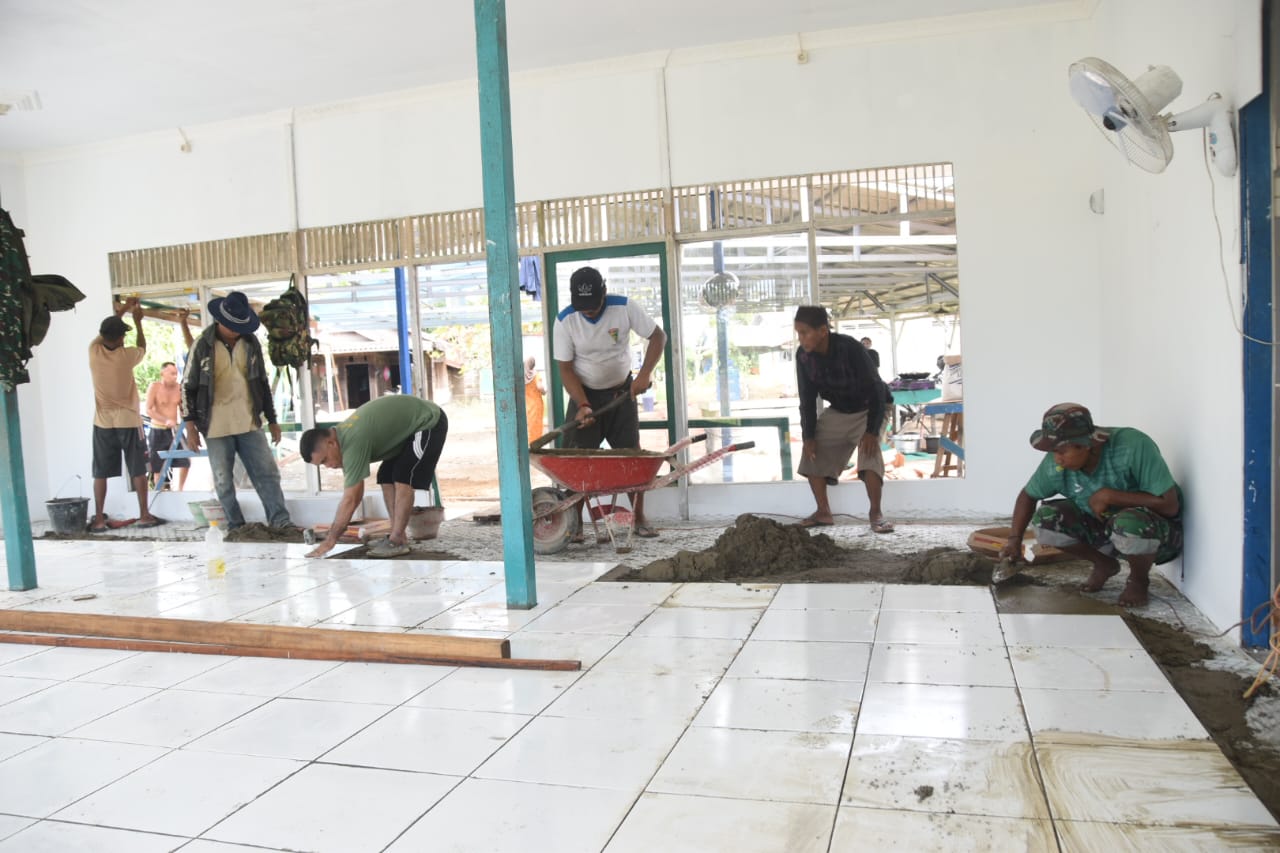 Pantauan pada Kamis (29/5/2025) menunjukkan fokus pengerjaan pada sasaran rehab rumah ibadah, yakni Langgar Darussalam. Anggota Satgas TMMD terlihat bahu membahu melaksanakan pemasangan keramik lantai, baik di bagian dalam maupun luar bangunan langgar.