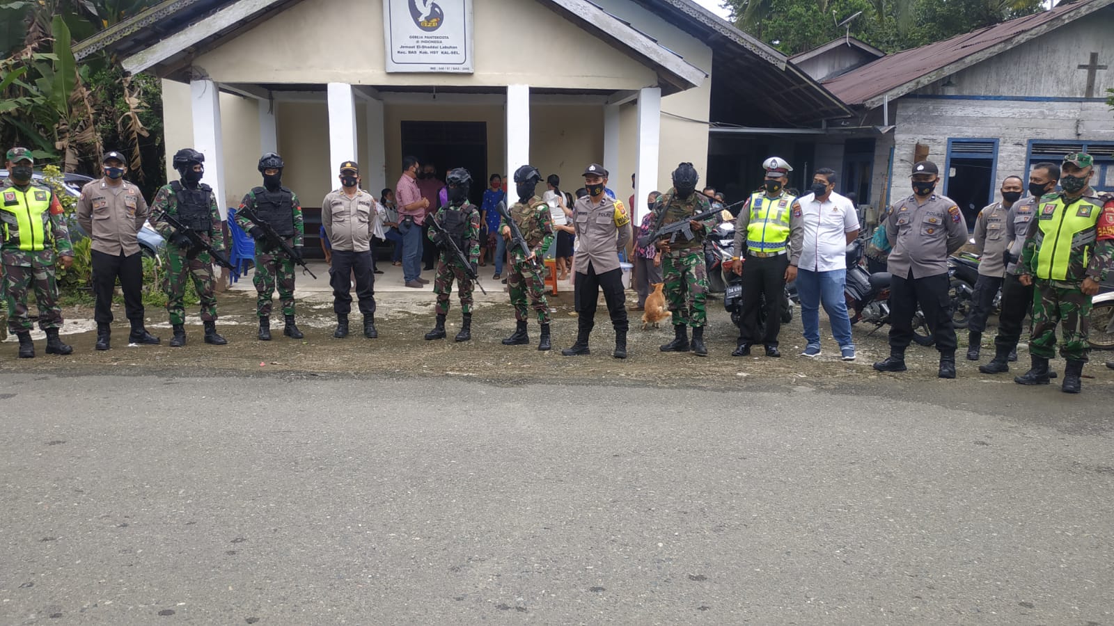 BARABAI-Sedikitnya 25 personel TNI-Polri dari Kodim 1002/Barabai,Yonif 621/Manuntung dan Polres HST melakukan pengamanan perayaan Jum’at Agung umat Nasrani.