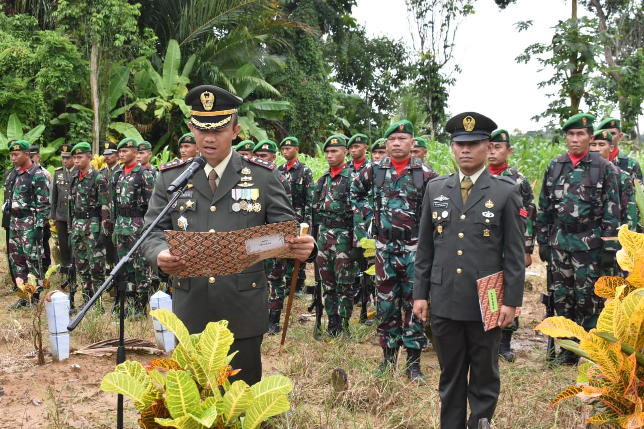 BARABAI-Dandim 1002/HST Letkol Kav Gagang Prawardhana,S.I.P.,M.Han memimpin upacara pemakaman secara militer Almarhum Sertu Suprayitno, Jabatan Babinsa Koramil 1002-02/Batang Alai Utara bertempat di Pemakaman Umum desa Bhakti RT 005 RW. 002 Kec. Batu Benawa Kab. HST. Kamis (02/02/2023).