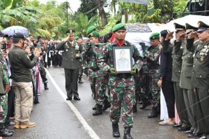 Semoga keluarga diberikan ketabahan kesabaran dan bimbingan serta perlindungan dari Alloh SWT di sisi lain kami menyadari bahwa Almarhum sebagai Manusia biasa semasa hidupnya juga tidak luput dari segala kekhilafan dan kealfaan untuk itu saya mengajak para hadirin kiranya melapangkan dada untuk memaafkan segala kesalahan almarhum semasa hidupnya,”tutup Dandim