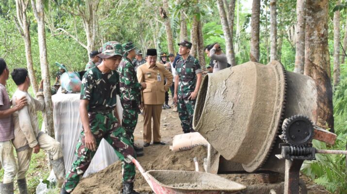 BARABAI-Usai membuka secara resmi TNI Manunggal Membangun Desa (TMMD) ke-116 Kodim 1002/HST, Wakil Bupati HST H.Drs. Mansyah Saberi didampingi Dansatgas TMMD ke-116 Kodim 1002/HST Letkol Gagang Prawardhana.S.I.P.,M.Han dan rombongan meninjau lakosi TMMD yang berada di desa Hapulang Kecamatan Haruyan Kabupaten Hulu Sungai Tengah. Rabu (10/05).